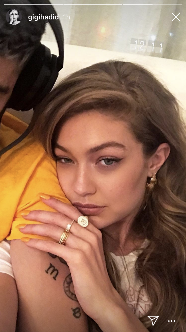 After her event, Hadid took a moment to share a very rare shot of her and her back-on boyfriend Zayn Malik being cuddly on Instagram. It’s not quite a permanent grid shot yet, but it’s close!