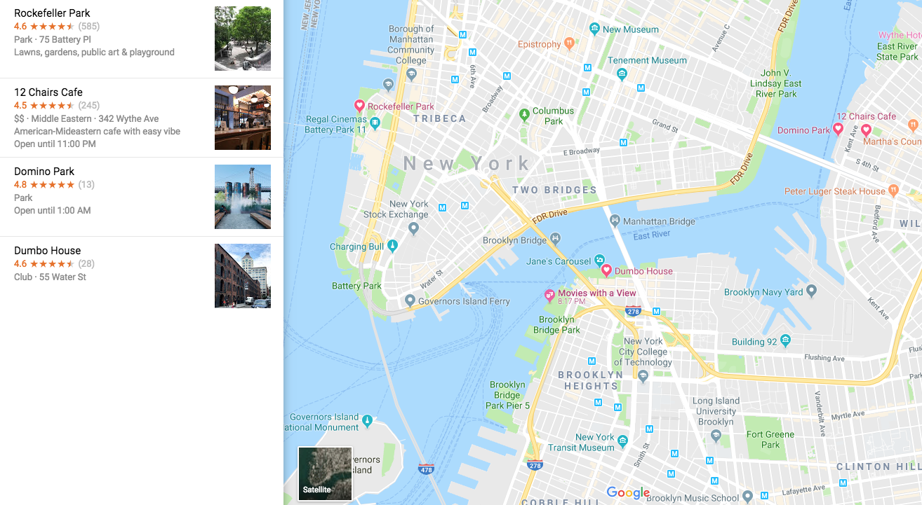 4. 12 Chairs Cafe in Williamsburg: An American-Mideastern restaurant in Williamsburg, not far from Domino Park. It has a 4-star rating on Yelp, and bonus: if you’re Jailey, you can make out fiercely and still stay and eat there.